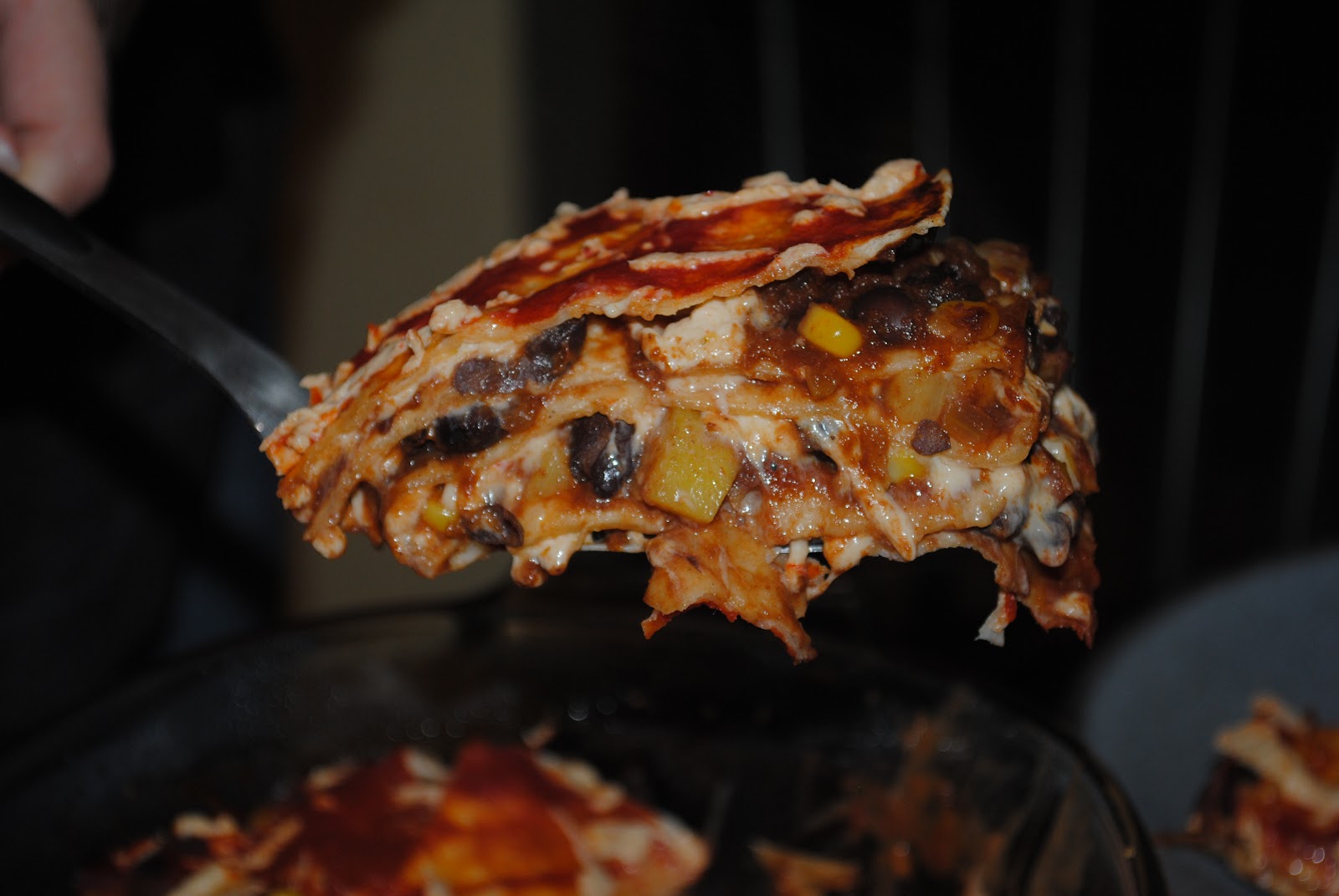 FIRST ATTEMPT...Tortilla Lasagna - torn out of Vegetarian Times magazine.